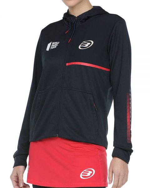El diseño se presenta con capucha, gráfica de la línea en la manga, bolsillos con cremallera, puños y bajo de rib. Está confeccionada en Interlock de poliéster con aplicación de tafeta bielástica en el pecho.